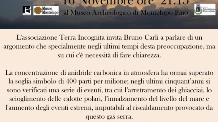 Sabato 16 novembre dalle 21.15 al Museo Archeologico di Montelupo si tiene l'incontro con il dott. Carlo Bruni, che parlerà di clima, un argomento…