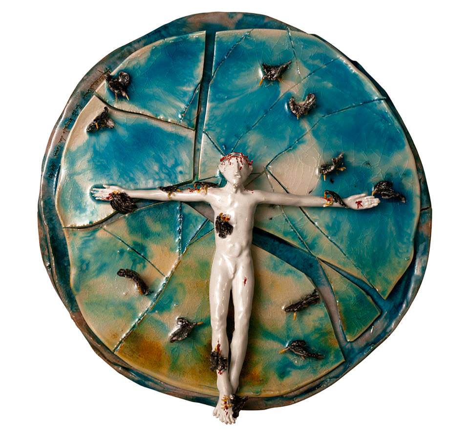 “La parte principale dell’opera è in maiolica, presenta poi un elemento in cera, che poi realizzerò in bronzo.
