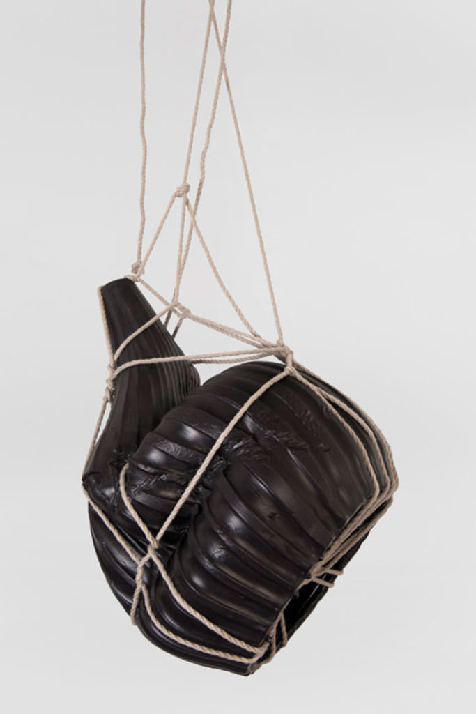 La significazione di Shibari deriva dall’antico rituale giapponese di legatura dei corpi attraverso l’intreccio di corde, che Morgane Tschiember adotta per tradurre la fondamentale trilogia scultorea di materia, volume e spazio. Nel recupero di modelli precostituiti, come vasi e porta oggetti attinti direttamente dal catalogo della manifattura di Stylnove di Nove, l’artista dimostra il forte legame con la tradizione stabilendo un linguaggio di virtuosismi fra continuità e discontinuità, fra pieno e vuoto, fra forme e contro-forme. Categorie universali, che ospitano pensieri di antichi rituali, trattenuti dall’artista, per spiegare la complessità della materia.