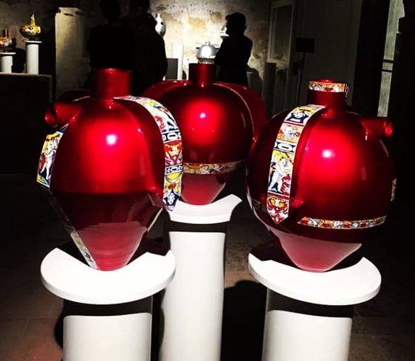 Dopo Simeti. Vaso decorato + lustri. Dimensioni: h.56 cm x diam. 26 cm. Info e acquisto: Sergio Pilastri spilastri60@gmail.com -