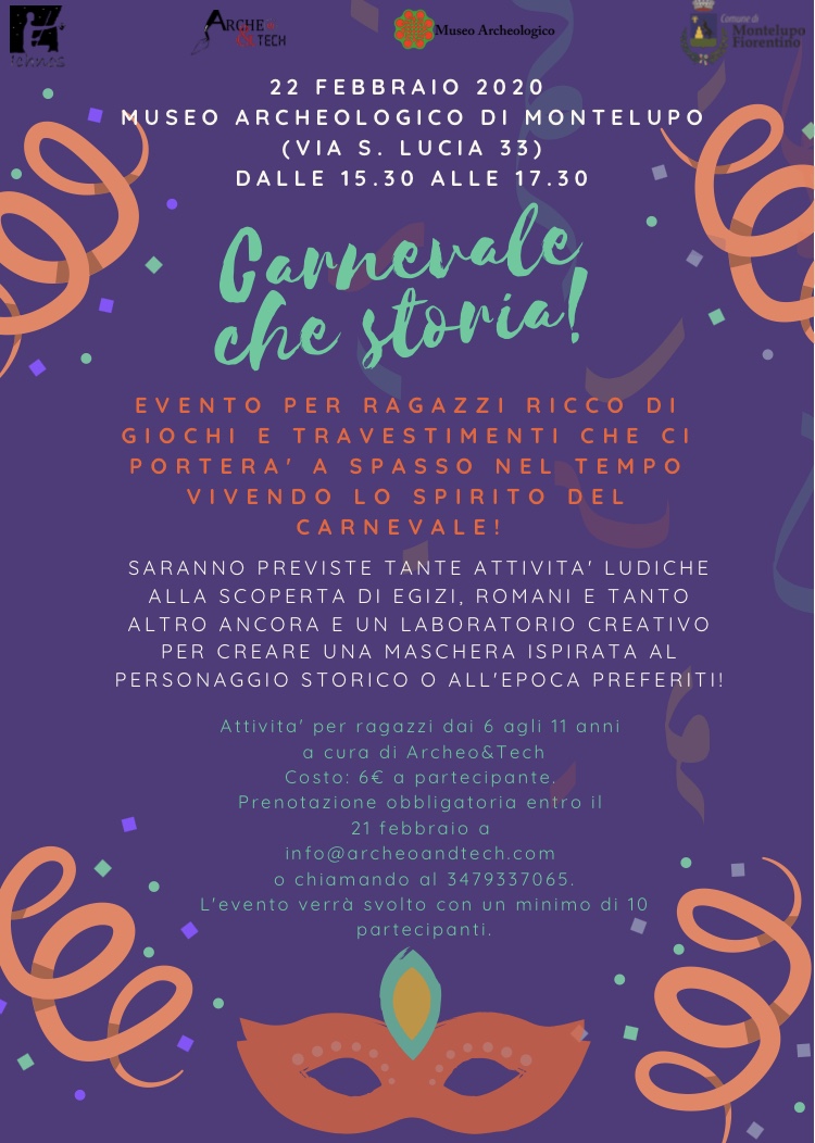 Evento per ragazzi ricco di giochi e travestimenti che ci porterà a spasso nel tempo vivendo lo spirito del Carnevale!