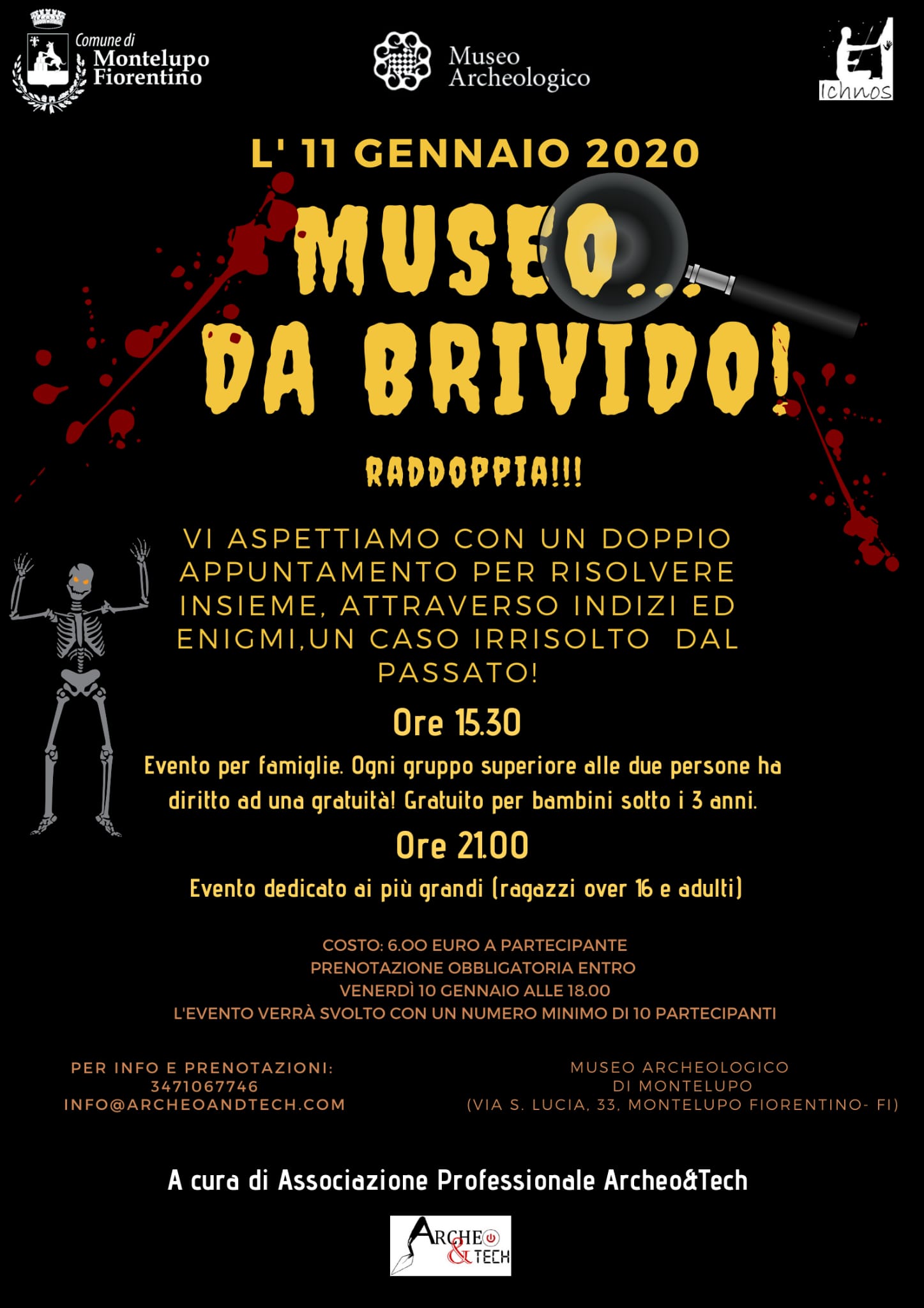 PRENOTAZIONE OBBLIGATORIA ENTRO VENERDÌ 10 GENNAIO ALLE 18.00 A: info@archeoandtech.com | 3471067746