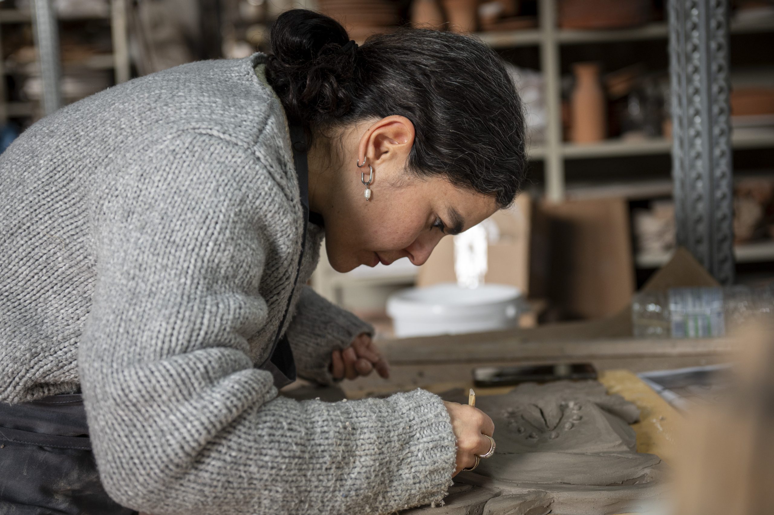 Durante i giorni della residenza, Anna Capolupo ha sperimentato la proprio ricerca artistica attraverso il materiale ceramico grazie all'aiuto della bottega Ceramiche Ammannati.