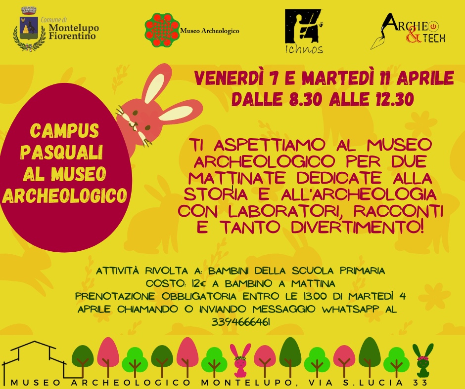 Il Museo Archeologico organizza due mattinate durante le vacanze di Pasqua per tutti i bambini appassionati di storia e archeologia: laboratori, racconti e tanto divertimento alla scoperta delle civiltà del passato. Ogni giorno un argomento diverso con giochi e attività per imparare, creare e giocare immersi nella storia dei nostri antenati.