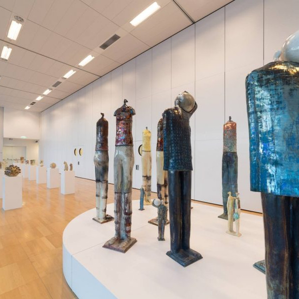 Nelle parole del curatore, Marco Tonelli, «questa mostra ha due anime ben distinte: una moderna e pubblica, l’altra antica e familiare. È una mostra che vive in spazi urbani interni e esterni collegati da opere d’arte, grazie soprattutto al fatto che gli spazi stessi sono stati pensati e progettati fin dall’inizio in maniera trasparente, tali cioè da poter passare naturalmente uno nell’altro, uno vicino l’altro». Le opere si trovano infatti sulla grande pensilina della fermata della tramvia che porta a e viene da Firenze, nell’ampia Piazza della Resistenza e all’interno dell’Auditorium del Centro Culturali, inaugurato nel 2013 da Richard Rogers, visibili dalla facciata di vetro. Sono spazi di passaggio, di spostamenti, di incontri e relazioni, una sorta di agorà che permette anche delle soste, dei punti di osservazione nella e della piazza stessa. Passaggi scaturisce proprio dal desiderio di creare un percorso nuovo scandito e segnalato da sculture in bronzo poste all’esterno per finire, passando internamente per statue in ceramica, ad oggetti d’uso comune anch’essi in ceramica. Il tema stesso di queste sculture, quello cioè del viaggiatore, del guerriero (maschile e femminile), della donna e dell’uomo edenici e seminudi uno di fronte all’altra, stanno ad annunciare un viaggio senza tempo e arcaico, testimoniato da sentinelle, cavalli su ruote con tutte le associazioni possibili del caso.