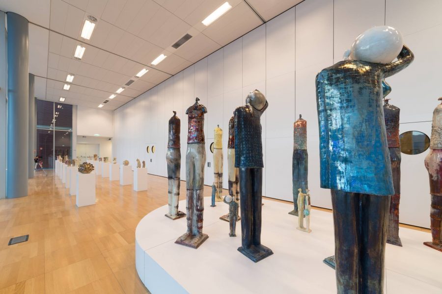 Nelle parole del curatore, Marco Tonelli, «questa mostra ha due anime ben distinte: una moderna e pubblica, l’altra antica e familiare. È una mostra che vive in spazi urbani interni e esterni collegati da opere d’arte, grazie soprattutto al fatto che gli spazi stessi sono stati pensati e progettati fin dall’inizio in maniera trasparente, tali cioè da poter passare naturalmente uno nell’altro, uno vicino l’altro». Le opere si trovano infatti sulla grande pensilina della fermata della tramvia che porta a e viene da Firenze, nell’ampia Piazza della Resistenza e all’interno dell’Auditorium del Centro Culturali, inaugurato nel 2013 da Richard Rogers, visibili dalla facciata di vetro. Sono spazi di passaggio, di spostamenti, di incontri e relazioni, una sorta di agorà che permette anche delle soste, dei punti di osservazione nella e della piazza stessa. Passaggi scaturisce proprio dal desiderio di creare un percorso nuovo scandito e segnalato da sculture in bronzo poste all’esterno per finire, passando internamente per statue in ceramica, ad oggetti d’uso comune anch’essi in ceramica. Il tema stesso di queste sculture, quello cioè del viaggiatore, del guerriero (maschile e femminile), della donna e dell’uomo edenici e seminudi uno di fronte all’altra, stanno ad annunciare un viaggio senza tempo e arcaico, testimoniato da sentinelle, cavalli su ruote con tutte le associazioni possibili del caso.